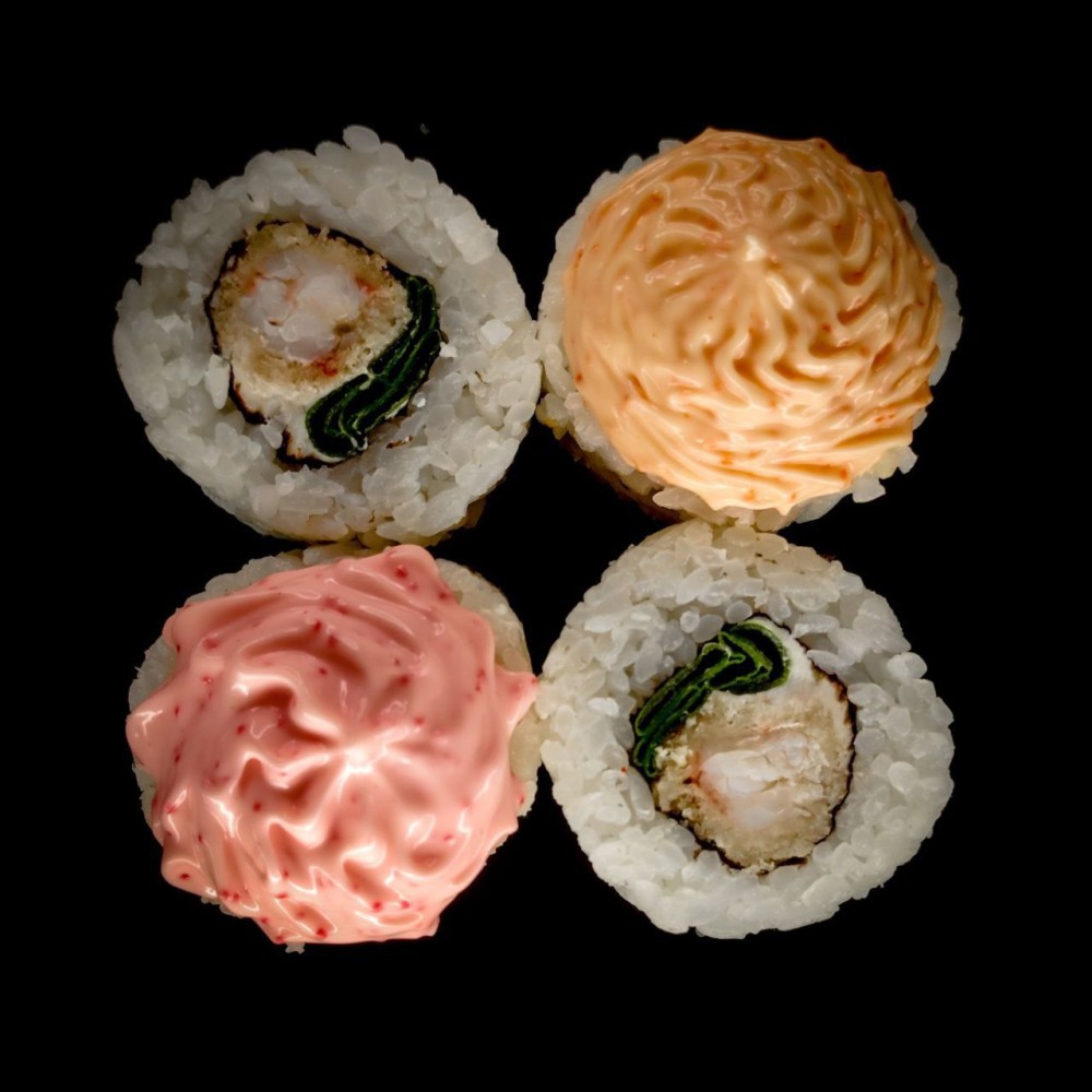 Креветка темпура , лук зелёный, соус яки, соус лава