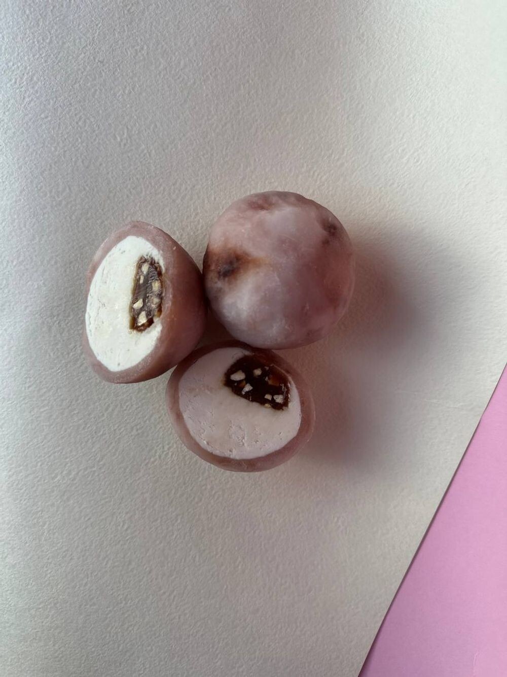 Сыр твороженный, сливки 33%, инвертный сироп, желатин, маскарпоне, сахарная пудра, паста арахисовая,арахис дроблёный, сахар, соль, рисовая мука.
