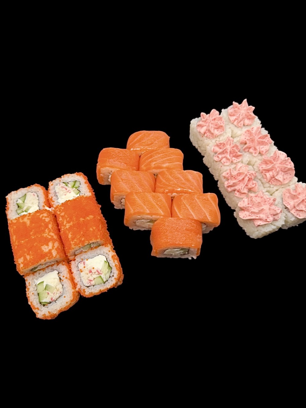 Филадельфия с огурцом, Калифорния Кани, Лава маки с креветкой.