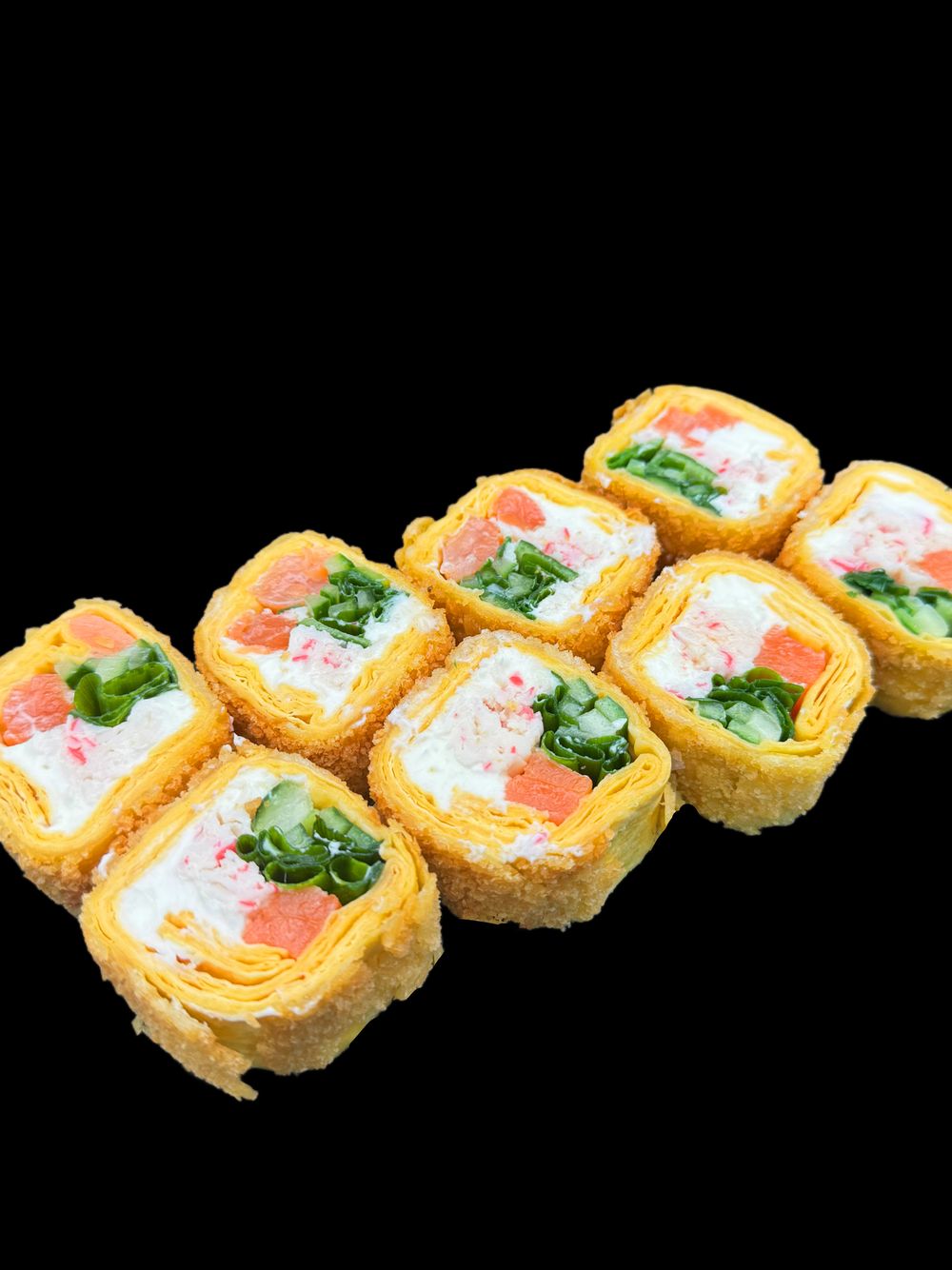 Сливочный сыр, краб, лосось, огурец, лук зелёный